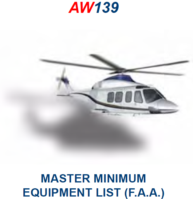 藍天飛行翻譯公司承接某大型通航公司的阿古斯塔維斯特蘭AW139直升機主最低設備清單翻譯任務 AW139 MASTER MINIMUM EQUIPMENT LIST Translation ![]() Agusta Westland 139 阿古斯塔維斯特蘭139 ![]() AW139 MASTER MINIMUM EQUIPMENT LIST AW139 主最低設備清單 ![]() 警航AW139 阿古斯塔維斯特蘭AW139直升機主最低設備清單(Agusta Westland 139 MASTER MINIMUM EQUIPMENT LIST)的主要內容包含有: Cover Page |
