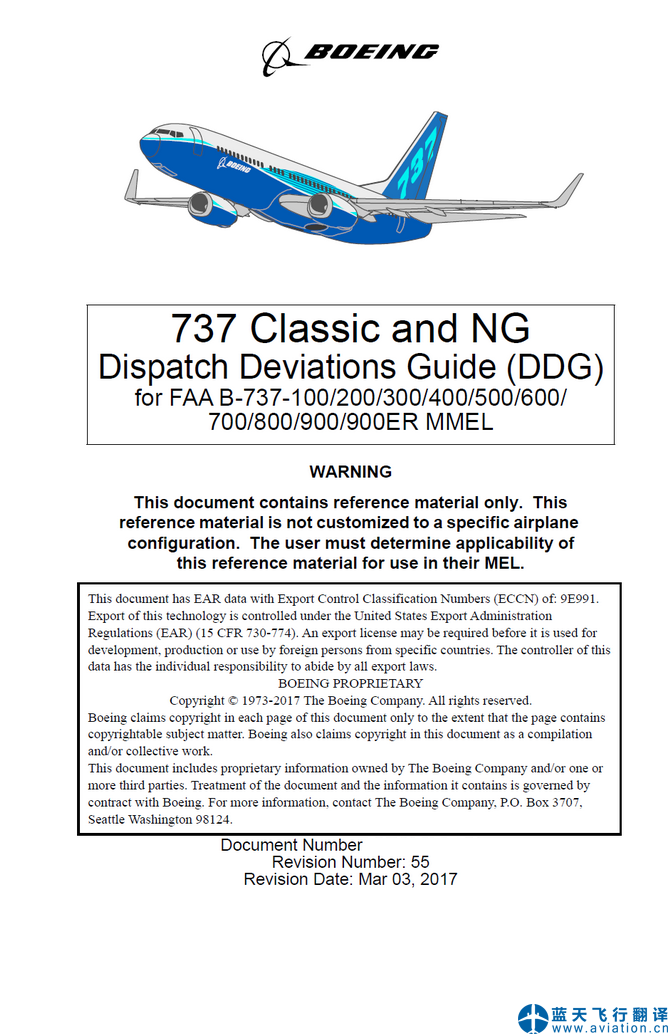 北京藍(lán)天飛行翻譯公司完成航空公司波音737放行偏離指南DDG翻譯任務(wù) Boeing 737 Classic and NG Dispatch Deviations Guide (DDG) Translation ![]() 737放行偏離指南 737 Dispatch Deviations Guide (DDG) 737放行偏離指南(Dispatch Deviations Guide (DDG))的主要內(nèi)容包含有: General |
