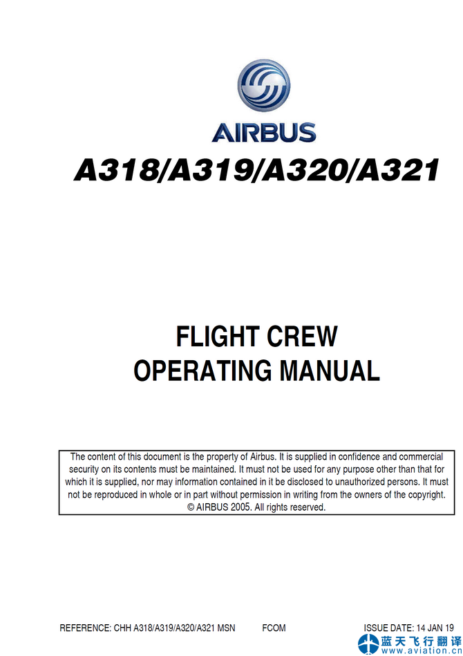 北京藍(lán)天飛行翻譯有限公司完成2019年1月14日版本空客 A320NEO 飛行機(jī)組操作手冊(cè)、快速檢查單、飛機(jī)飛行手冊(cè)翻譯任務(wù) 14 JAN 19 Airbus A320NEO FLIGHT CREW OPERATING MANUAL, QUICK REFERENCE HANDBOOK and AIRPLANE FLIGHT MANUAL Translation 機(jī)隊(duì)包括4架空客A320NEO,構(gòu)型為320-251N(即A320NEO飛機(jī)),手冊(cè)為2019年1月14日版本A320NEO飛行機(jī)組操作手冊(cè)(FLIGHT CREW OPERATING MANUAL)、A320NEO快速檢查單(QUICK REFERENCE HANDBOOK)、A320NEO飛機(jī)飛行手冊(cè)(AIRPLANE FLIGHT MANUAL)。 ![]() A320NEO飛行機(jī)組操作手冊(cè) A320NEO FLIGHT CREW OPERATING MANUAL ![]() A320NEO快速檢查單 A320NEO QUICK REFERENCE HANDBOOK ![]() A320NEO飛機(jī)飛行手冊(cè) A320NEO AIRPLANE FLIGHT MANUAL