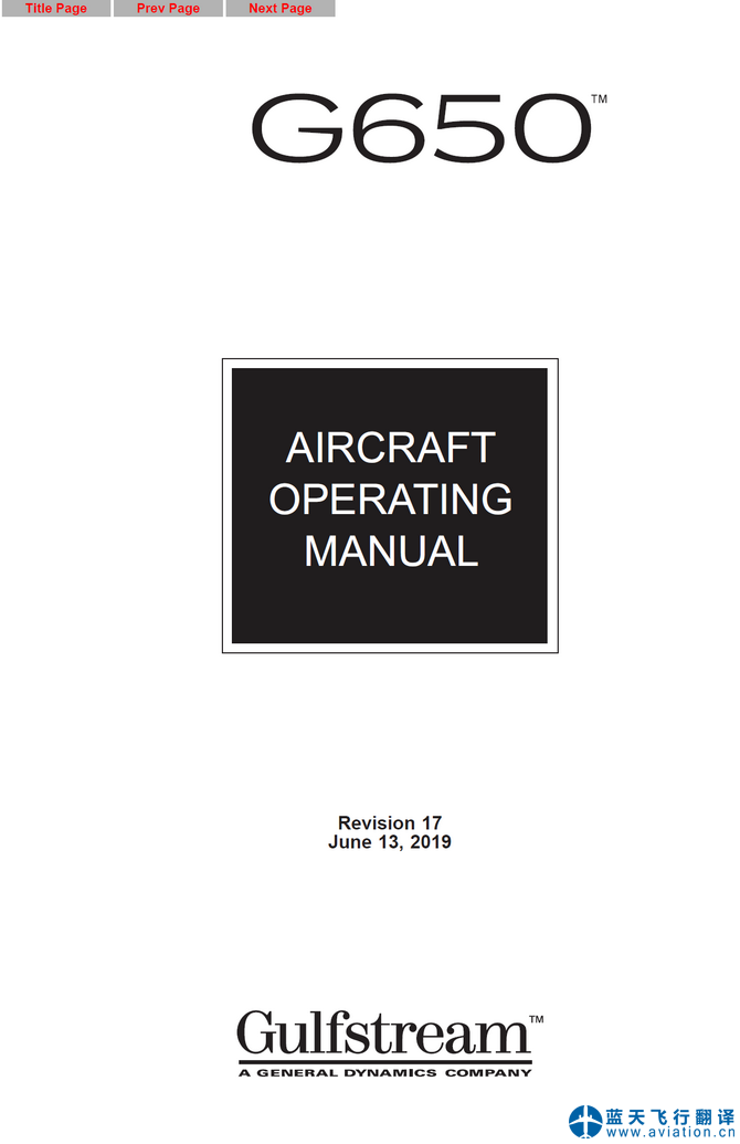本次承接的灣流G650飛行手冊版本為第17版,2019年6月13日版本。