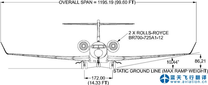 ![]() 灣流G650尺寸 G650 Dimension ![]() ![]() 灣流G650尺寸 G650 Dimension ![]() 灣流G650飛機(jī)操作手冊 G650 Aircraft Operating Manual G650以16100磅推力的(71.6千牛)羅爾斯-羅伊斯公司BR725發(fā)動機(jī)為動力,該發(fā)動機(jī)比BR710(G550的動力)功率大4.6%。新的后掠葉片風(fēng)扇減小燃油燃燒和噪聲,而新的燃燒室降低排放。首飛定于2009年下半年,2011年獲美國和歐洲合格證,2012年進(jìn)入服役。2012年飛機(jī)交付時的完成價(jià)5850萬美元,2013年開始從5850萬美元起價(jià)。