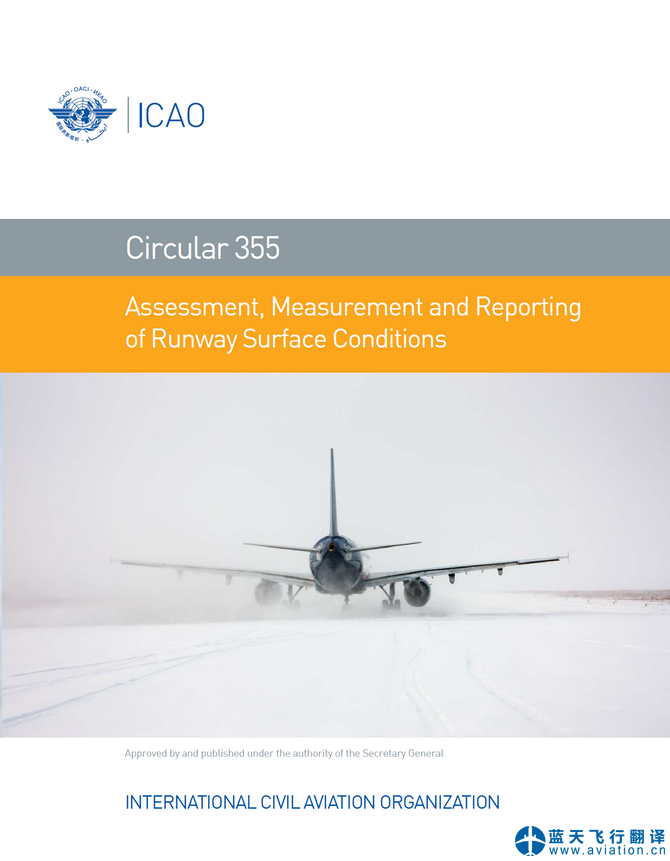 北京藍(lán)天飛行翻譯公司承接國(guó)際民航組織通告跑道道面條件評(píng)估、測(cè)量和報(bào)告翻譯任務(wù) INTERNATIONAL CIVIL AVIATION ORGANIZATION Circular 355 Assessment, Measurement and Reporting of Runway Surface Conditions