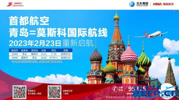 中國民用航空網(wǎng)訊(2023年2月11日 通訊員 李靜)隨著越來越多的旅客有國際商務(wù)往來、探親旅游的計劃,國際航班的需求也隨之不斷提升。為滿足廣大旅客出行需求,海航航空旗下首都航空計劃2023年2月23日恢復青島=莫斯科國際航線,為旅客由國內(nèi)出發(fā)至俄羅斯提供新的航線選擇。