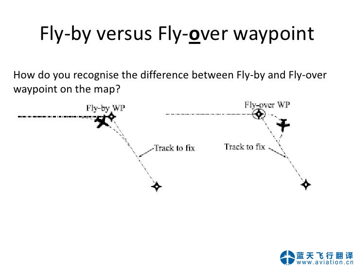 To inform flight crews of an erroneous distance to waypoint anomaly and subsequent fly-over instead of fly-by waypoint in the route. 出自757FCOM fly-over必須得經(jīng)過航路點上空,可以翻為“飛越” fly-by不經(jīng)過航路點上空,可以翻為“從航路點旁飛過” ![]() Fly-by 與 Fly-over ![]() Fly-by versus Fly-over waypoint |