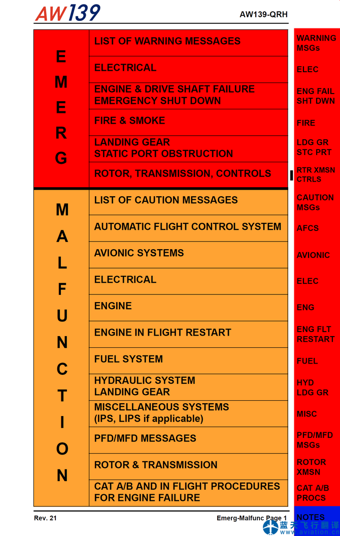 北京藍天飛行翻譯公司承接直升機公司AW139直升機快速檢查單翻譯任務 AW139 Quick Reference Handbook(QRH) Translation ![]() AW139 ![]() AW139直升機 AW139 Helicopter ![]() AW139直升機快速檢查單 AW139 Quick Reference Handbook(QRH) AW139直升機快速檢查單(Quick Reference Handbook(QRH))的主要內(nèi)容包含有: General |