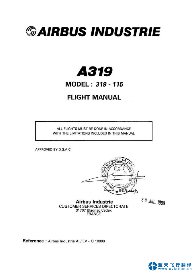 北京藍(lán)天飛行翻譯公司完成大型公務(wù)機(jī)公司2018年8月6日版本空客公務(wù)機(jī)ACJ319全套飛行手冊(cè)翻譯任務(wù) 06 AUG 18 whole set of ACJ319 Flight Manual Translation 本次翻譯的空客公務(wù)機(jī)為ACJ319-115機(jī)型。ACJ319全套飛行手冊(cè)包含有:ACJ319飛行機(jī)組操作手冊(cè)(FLIGHT CREW OPERATING MANUAL)、ACJ319快速檢查單(QUICK REFERENCE HANDBOOK)、ACJ319飛機(jī)飛行手冊(cè)(AIRPLANE FLIGHT MANUAL)。 ![]() ACJ319飛行機(jī)組操作手冊(cè) ACJ319 FLIGHT CREW OPERATING MANUAL ![]() ACJ319快速檢查單 ACJ319 QUICK REFERENCE HANDBOOK ![]() ACJ319飛機(jī)飛行手冊(cè) ACJ319 AIRPLANE FLIGHT MANUAL 空中客車公務(wù)機(jī)(ACJ)為客戶提供了公務(wù)航空領(lǐng)域獨(dú)有的專業(yè)性、最佳的服務(wù)、最先進(jìn)的科技和最高級(jí)別的關(guān)懷,創(chuàng)造了全球最有價(jià)值的飛行體驗(yàn)。 |