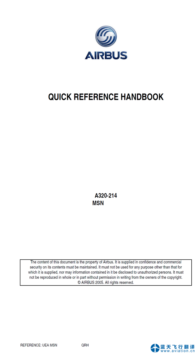 北京藍天飛行翻譯有限公司完成大型航空公司2020年6月3日版本空客A319/A320飛行機組操作手冊、快速檢查單和飛機飛行手冊翻譯任務 A319/A320 FLIGHT CREW OPERATING MANUAL, QRH QUICK REFERENCE HANDBOOK and AIRPLANE FLIGHT MANUAL Translation