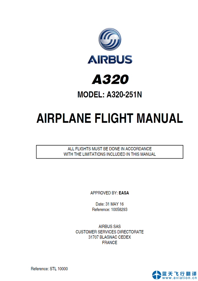 北京藍天飛行翻譯有限公司本次翻譯的A320飛行手冊總共包含10架飛機,構(gòu)型為320-214、320-251N。A320飛行機組操作手冊修訂日期為2020年10月26日、A320快速檢查單修訂日期為2020年11月18日,A320飛機飛行手冊修訂日期為2020年11月10日,A320飛行機組技術(shù)手冊修訂日期為2020年11月18日。